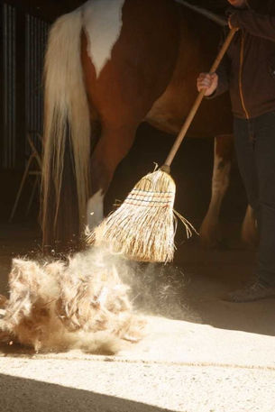 - Nettoyage des installations : s’occuper de l’entretien des boxes ou du pré (nettoyage, litière, etc)